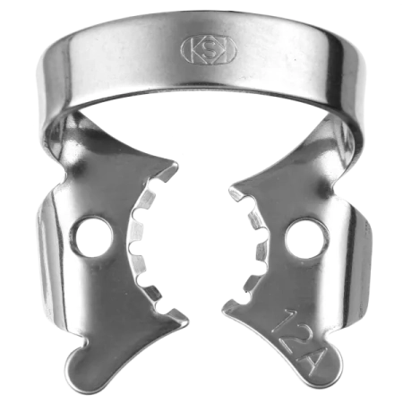 Кламп №12A — асимметричный, с горизонтальными зазубренными «челюстями» (tiger-тип), левосторонний, для верхних моляров с треугольной формой коронки.