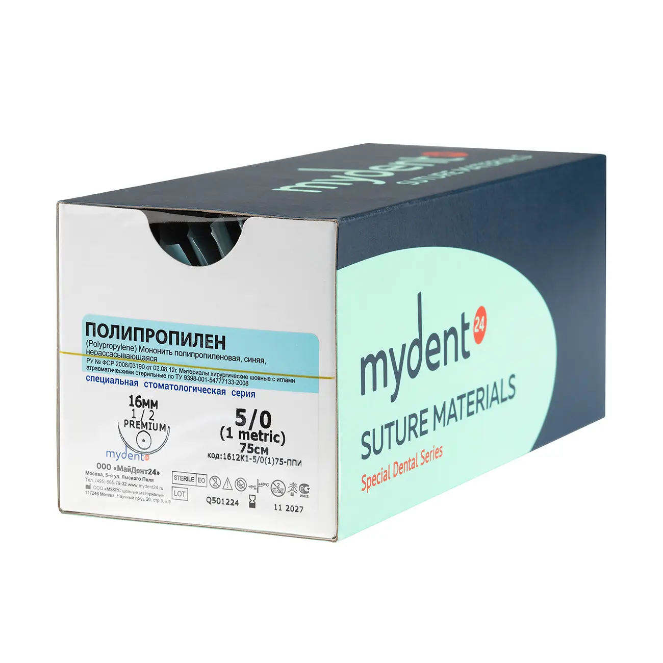Шовный материал Полипропилен NA 5/0 mono K 16 mm MYDENT